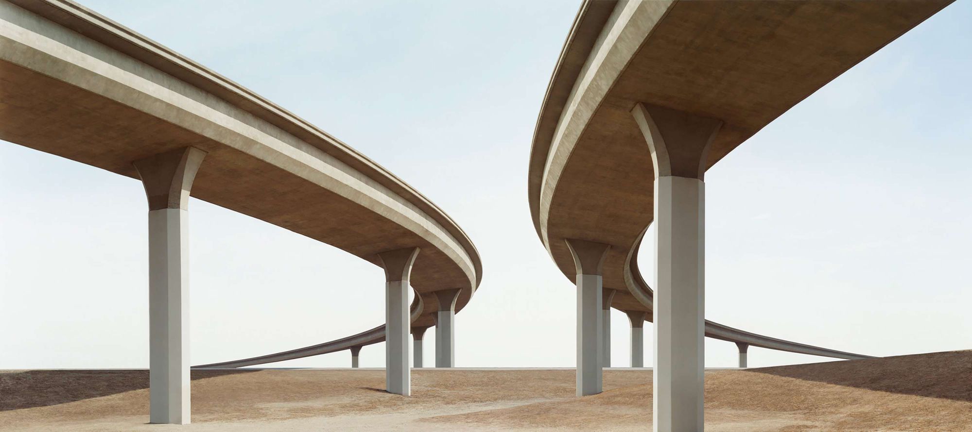 In this process, Schulz blurs the line between photographic and painted reality to optimize the images. Simultaneously, he reduces the physical buildings to their design concepts and the photographic reality to its virtual representation. His intent is to diverge from the typical pursuit of making digital images appear as real as possible. This approach might leave the viewer perplexed, as they struggle to distinguish between authentic elements captured by the camera and those created through digital tools.