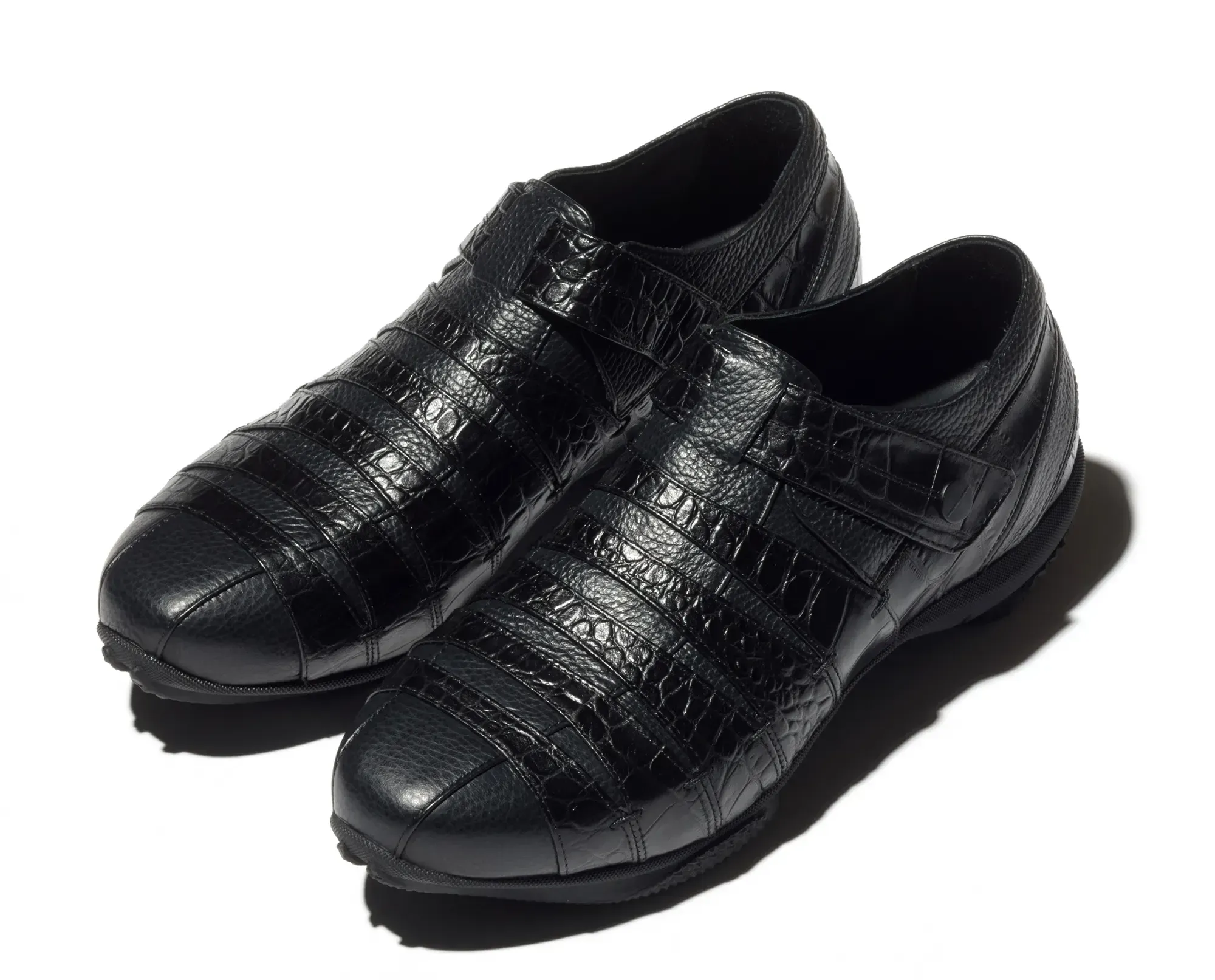 The Kormas Loafers, features a hybrid sole construction, geometric upper construction with two different textures leather. Slip-on opening with front strap.