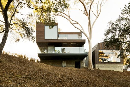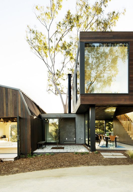 Two Living Pavilions Under One Roof Open Onto an Outdoor Covered Deck designed by Watson Architecture + Design