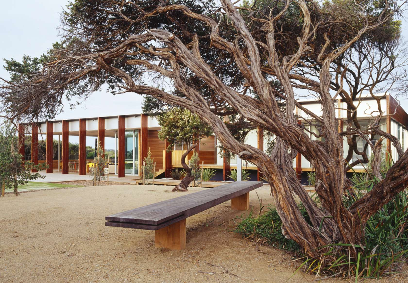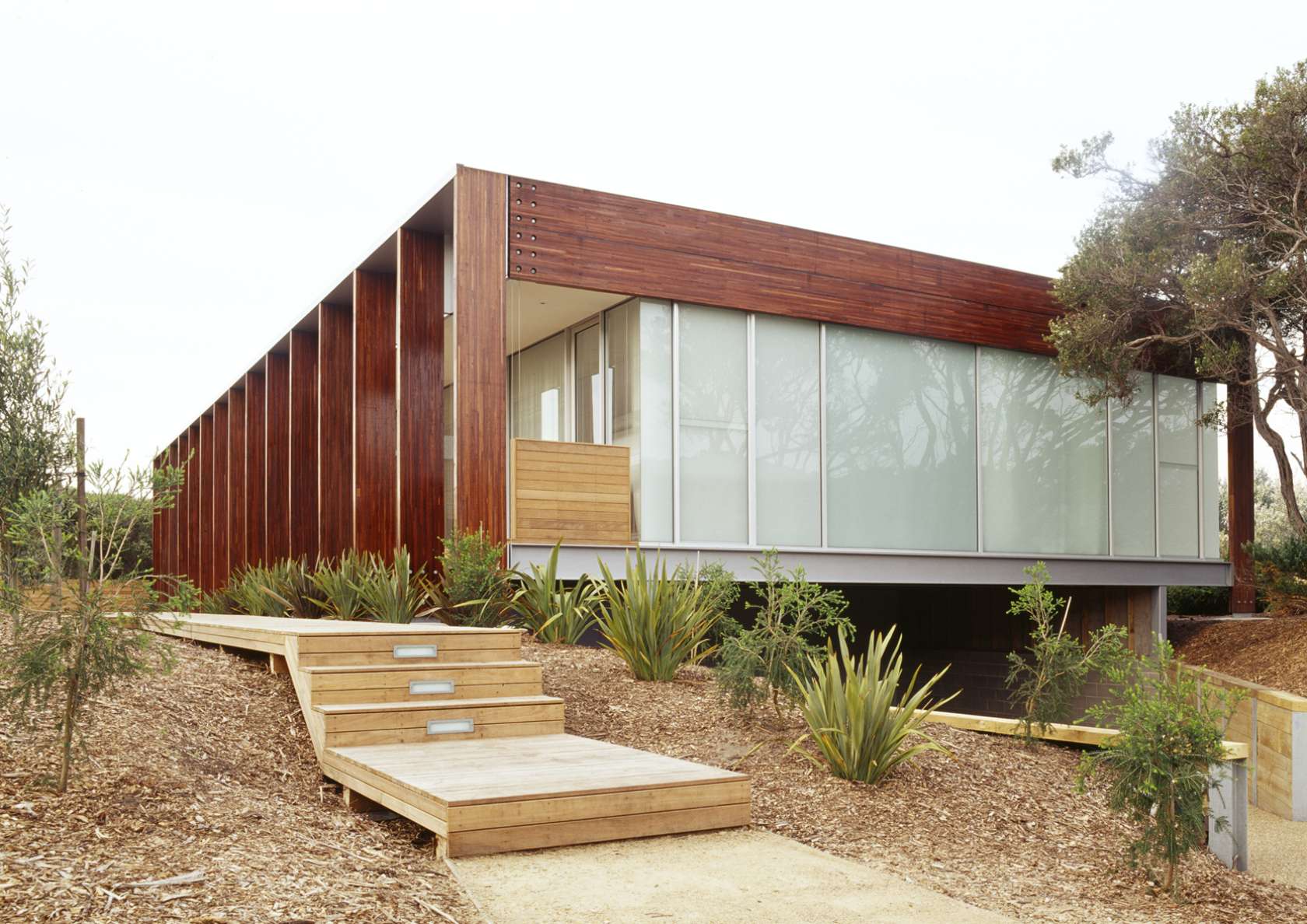 Two Living Pavilions Under One Roof Open Onto an Outdoor Covered Deck designed by Watson Architecture + Design